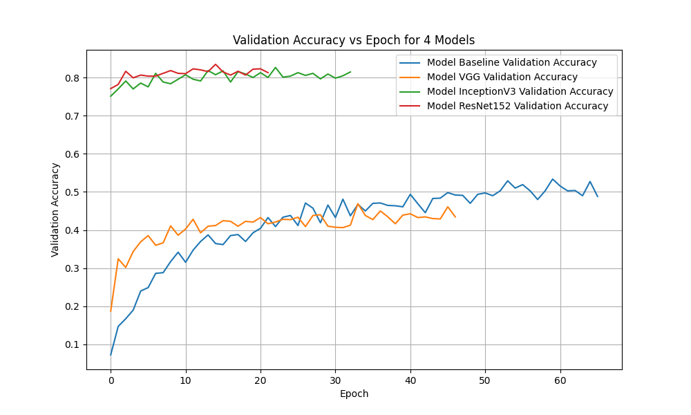 The project integrates data augmentation, transfer learning, and hyperparameter tuning to optimize performance. It trained or fine tuned a Baseline Model, a VGG Model, a Inception Model and a ResNet Model. The goal is to create an efficient, accurate system capable of classifying food images. This project is hosted within my home server